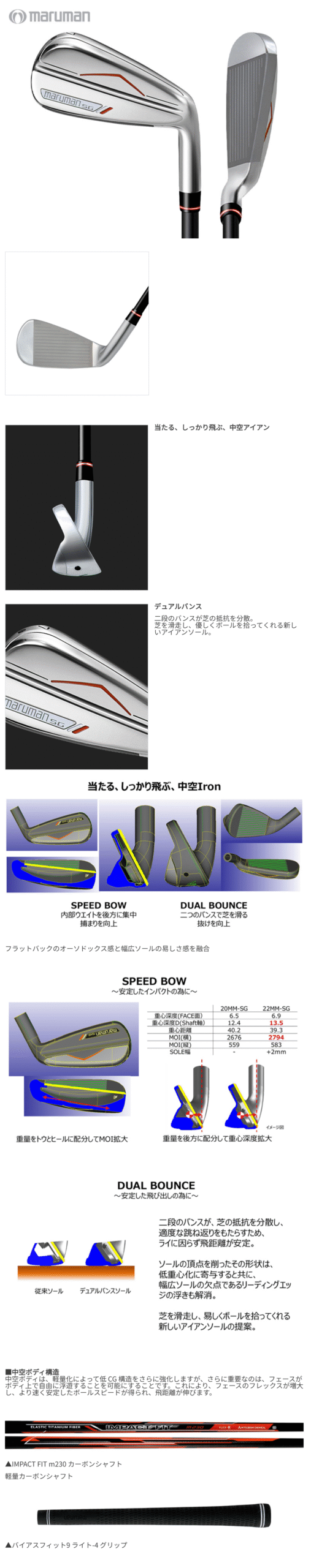 Maruman NEW SG Iron Set 8pcs (5-P, AW, SW) IMPACT FIT m230 Carbon Shaft R Flex