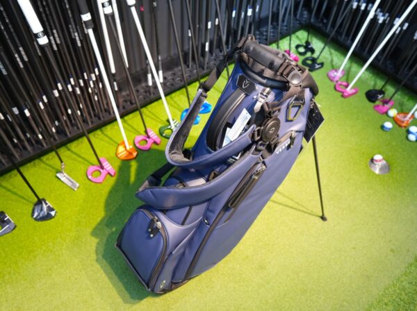 กระเป๋า stand bag ระดับพรีเมียมจาก Vessel — Player V Pro Pebbled Navy ออกแบบมาเพื่อผู้เล่นกอล์ฟที่ต้องการทั้งความหรูหราและการใช้งานจริงบนสนาม ท็อปมีสองแบบให้เลือก (7-Way หรือ 14-Way) พร้อม putter well และ divider เต็มความยาวทุกกระเป๋า ช่วยป้องกันไม้ติดขัดและจัดเรียงได้ง่ายเมื่อต้องใช้งานจริงบนสนามหรือใส่ไม้เต็มชุด