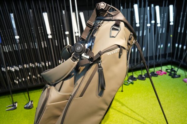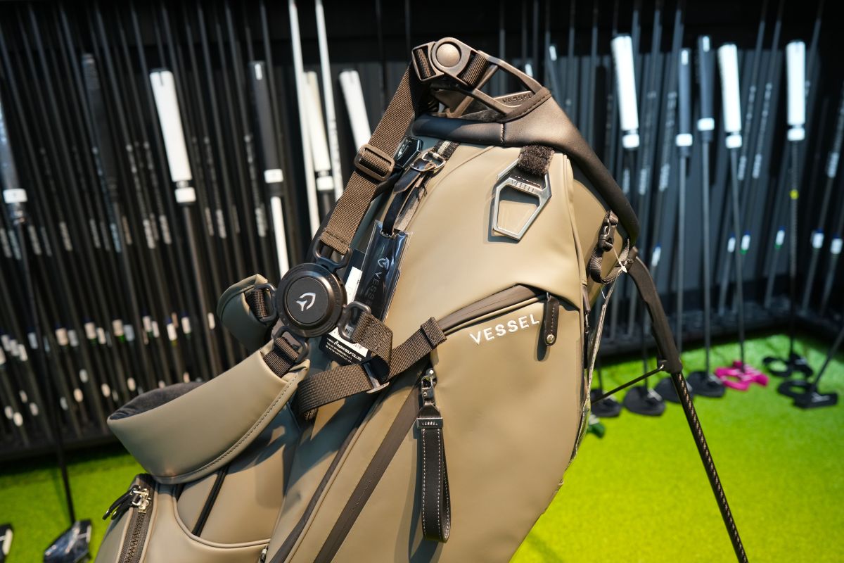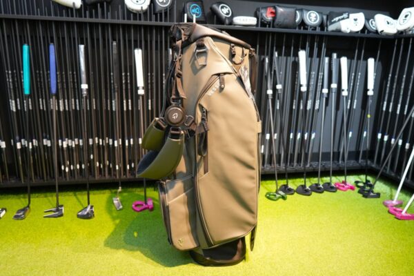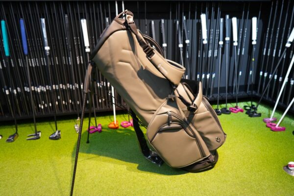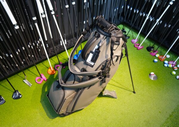 วัสดุใช้ระดับ Tour-Grade Synthetic Leather พร้อม finish แบบ pebble texture ให้ความรู้สึกสมูธแต่พรีเมียม, ขา carbon fiber ที่แข็งแรงแต่น้ำหนักเบา, ซับในผ้า velour ที่นุ่มและมี lining ป้องกันแบคทีเรียในช่องเก็บของสำคัญ ระบบสายสะพาย Equilibrium 2.0 ช่วยบาลานซ์น้ำหนักเวลาสะพาย, และมีช่องลอดสาย strap สำหรับ cart เพื่อป้องกันความเสียหายเมื่อติดตั้งบนรถกอล์ฟ