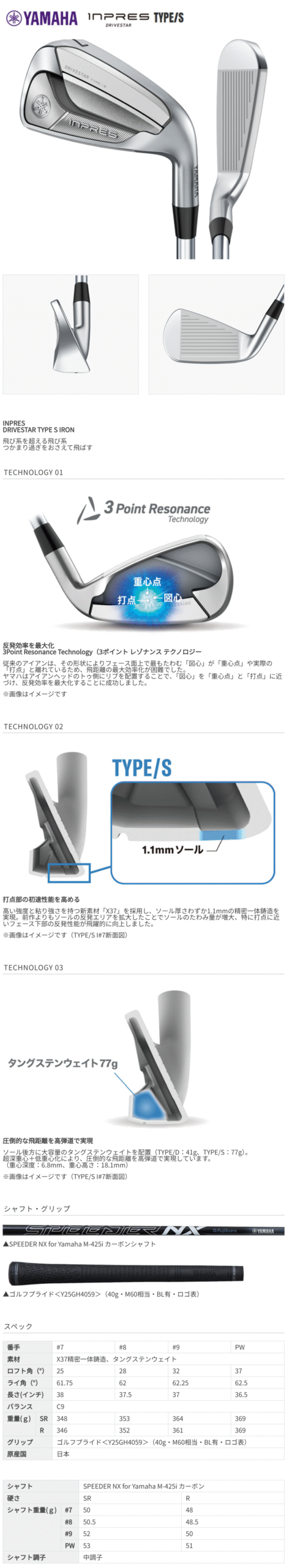 Yamaha INPRES DRIVESTAR TYPE/S Iron (6–PW) SPEEDER NX SR Flex